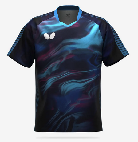 伸縮性に優れた吸水速乾生地を採用。チームでそろえるのにお勧めの、豊富なサイズ展開と比較的リーズナブルな価格を実現したゲームシャツです。リキッド柄が特徴のデザインです。